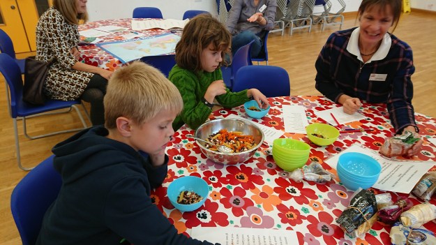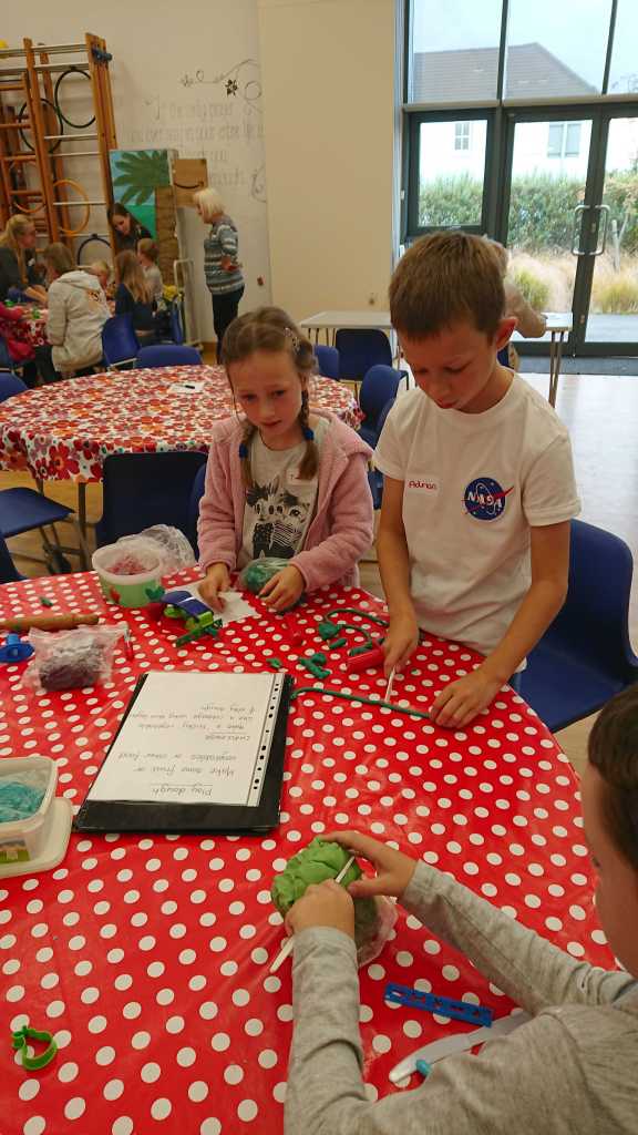 Large A to Z poster of different foodstuffs; ear of wheat penne pasta picture; beans and grains sorting; collect fruit and veg and make a collage picture; playdough; world map discussion on where our food comes and sharing our good fortune; puzzles; colour a farmer; drawing; books.